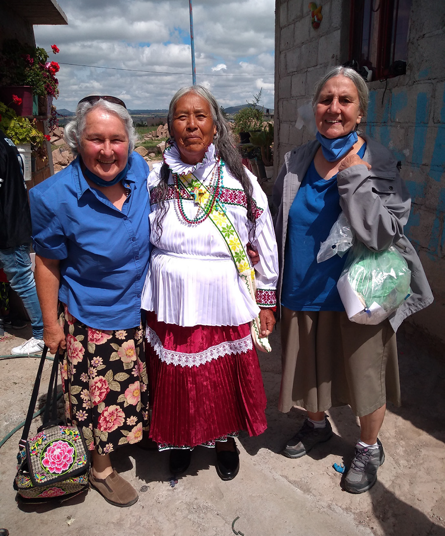 After handing over the sewing program to one of the Otomi women and closing a learning center for children, she began her current mission. In this new chapter of her service, she keeps the challenge of liturgist and theologian Father Robert Hovda close to her soul—”Don’t just celebrate Eucharist, be the Eucharist, broken and shared.” Three days a week she visits the sick and elderly in nearby villages – praying, talking, and bringing Eucharist. On a typical Tuesday, for example, she and a companion visit an 84-year-old mother and her disabled son suffering from Huntington’s disease. The care team assists the family by getting the son changed and washed in the morning. They feed him, talk, pray, clean the house, do laundry, and cook as needed. Then it’s out the door to the next family.